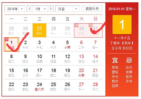 2017年12月30日-2018年1月1日放假,2018年1月2日正式上班。
