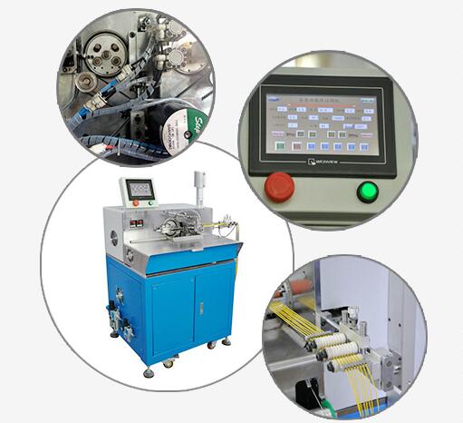 我們的產(chǎn)品采用5套松下伺服。氣動元件:電磁閥+氣缸(SMC);氣壓檢測SMC ;絲桿導(dǎo)軌:臺灣上銀;控制器:松下最新可編程控制器PLC;彩色觸摸屏:威綸(臺灣);全電腦數(shù)控調(diào)試:刀口大小,剝皮長度,打端深度,沾錫深度。